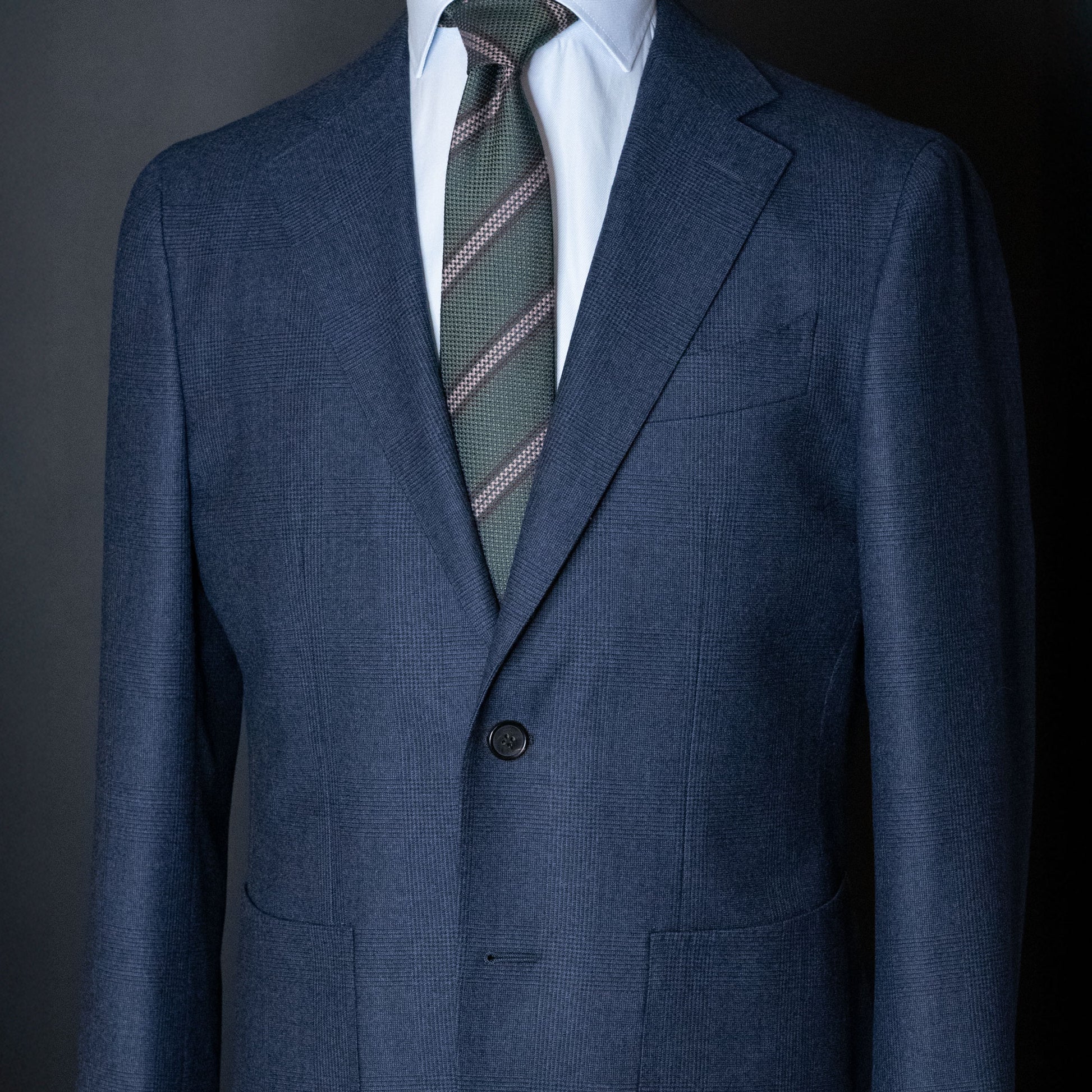 En elegant navy blazer med diskrete Prince of Wales ruter. Blazeren passer godt sammen med en lys grå eller beige bukse. Blazeren har ikke skulderputer og en halv canvas konstruksjon som gjør den lett og behagelig å ha på. Vi anbefaler å prøve blazeren i butikk før kjøp slik at vi kan sikre at du får riktig størrelse.