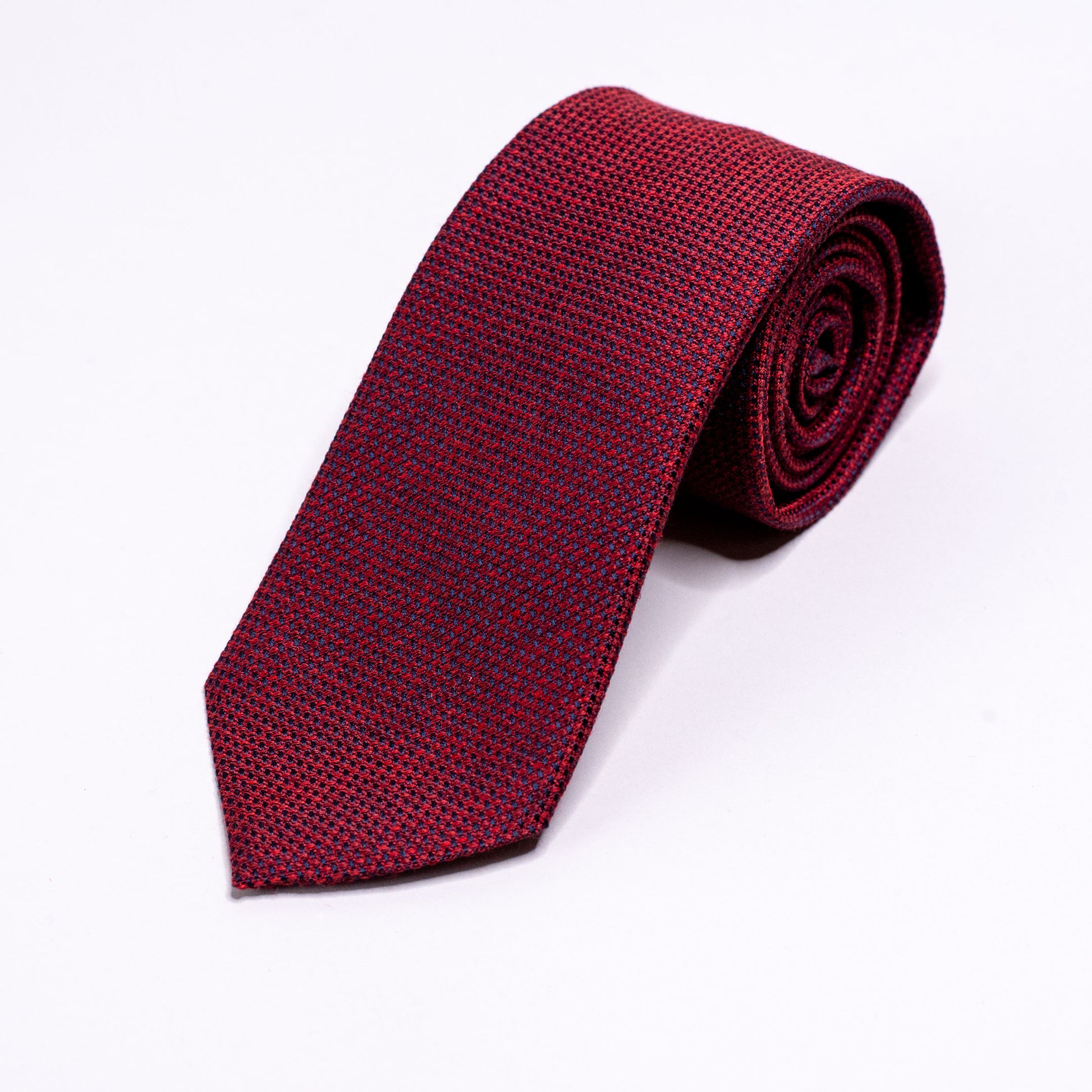 Mørkerødt slips med svak struktur. Det er et hint av mørkeblått i strukturen. Et klassisk slips som passer til hvit eller lyseblå skjorte og en dress eller blazer. Slipset passer også fint til skjorte med striper eller ruter. Dette slipset finnes i flere farger.